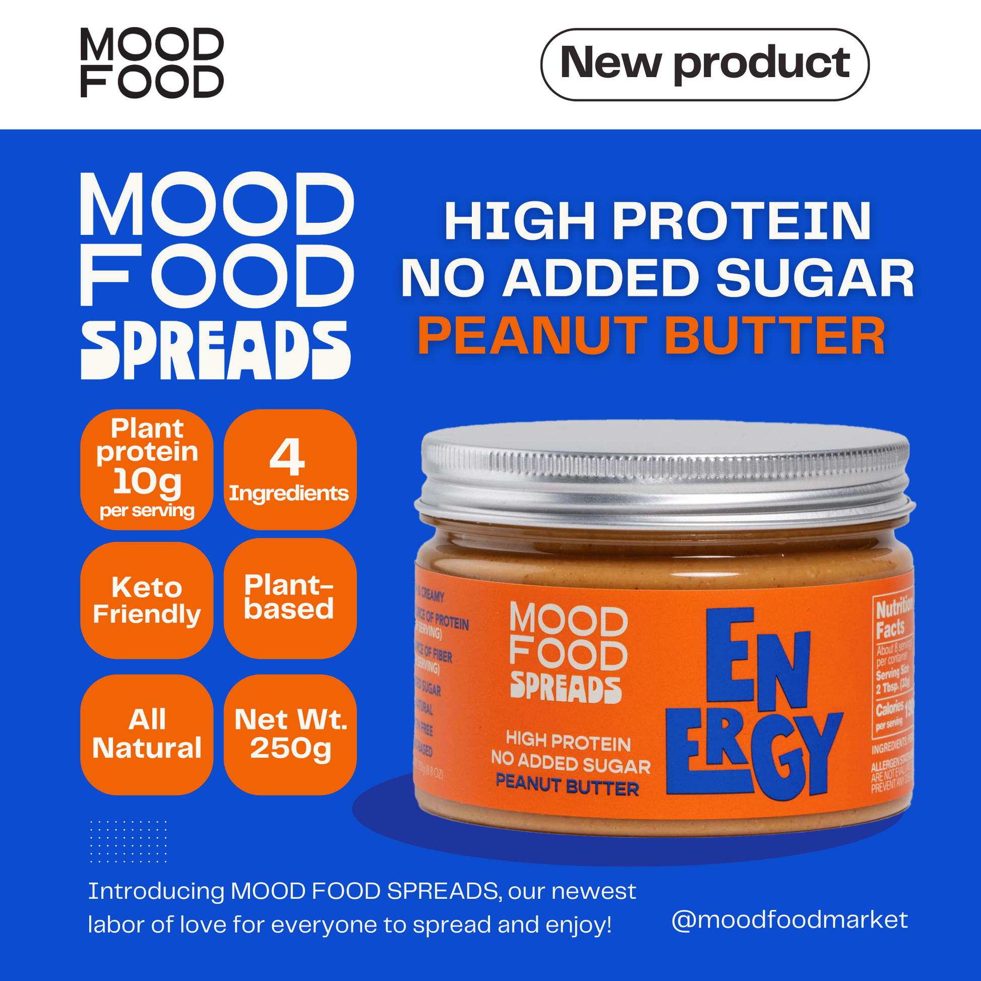 MOOD FOOD ENERGY Peanut Butter – High Protein, No Added Sugar | All-Natural, Keto-Friendly, Vegan