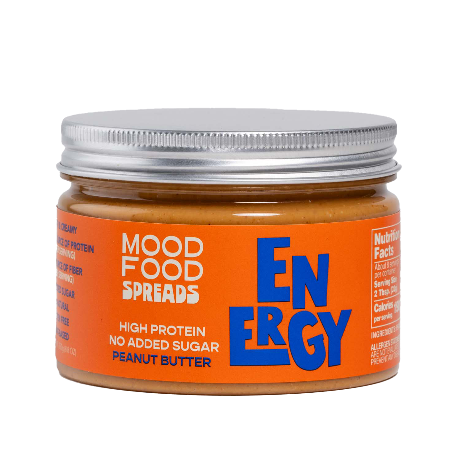 MOOD FOOD ENERGY Peanut Butter Spread is a high-protein, no added sugar peanut butter made with only 4 clean, natural ingredients. Packed with 10g of plant-based protein and sweetened naturally with Stevia (no erythritol or sugar alcohols), this spread is the perfect guilt-free fuel for your active lifestyle.